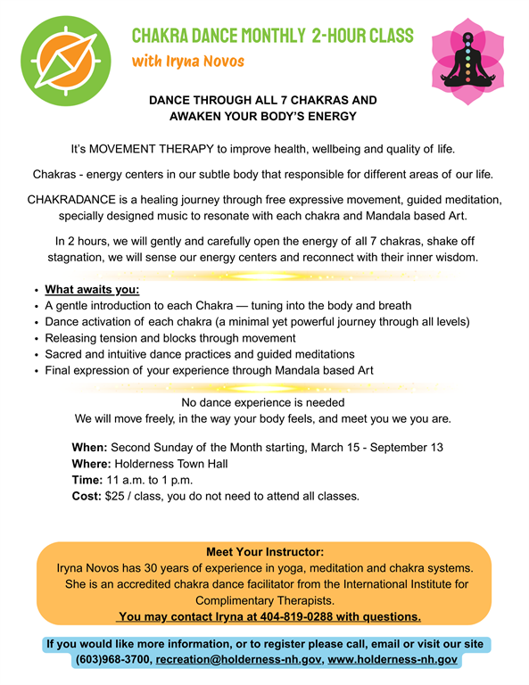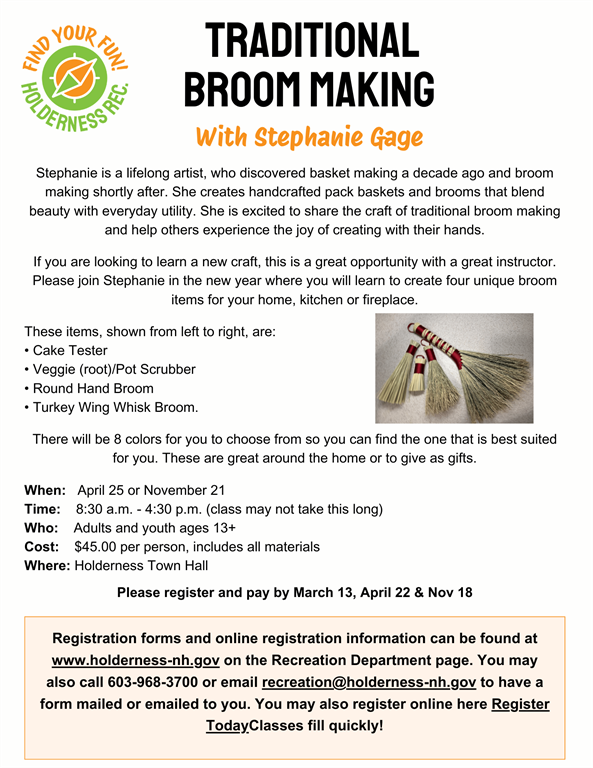 You can also register by mail by printing out a registration form and sending it to Holderness Recreation, P.O. Box 203, Holderness, NH 03245.